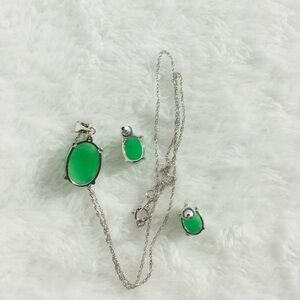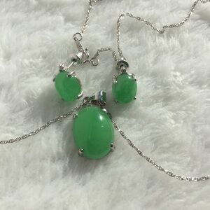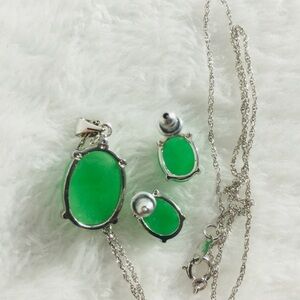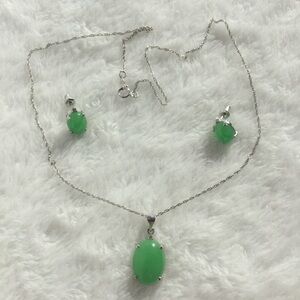 Green Dyed Jade Necklace & Drop Earrings 2-Pcs Set