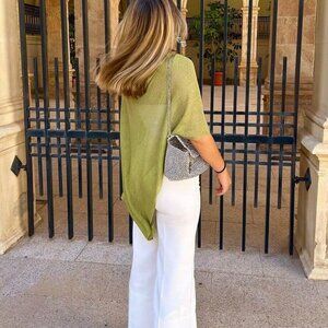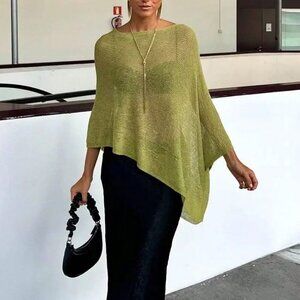 Green Elegant Women's Loose Knitted poncho Shawl sweater top
