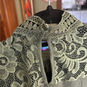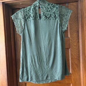 This relaxed blouse in a refreshing green hue features cap sleeves adorned with intricate lace, offering a touch of elegance. The mandarin collar adds a sophisticated flair, while the embellished design ensures a stylish and comfortable fit.