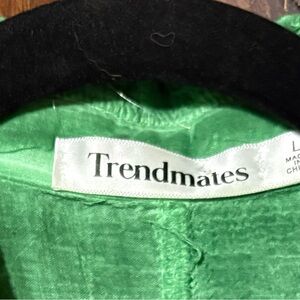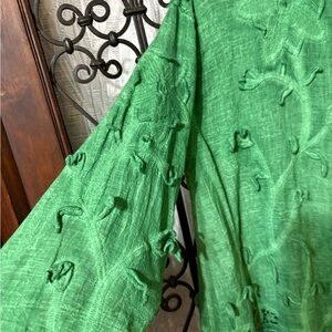 Stylish green jacket/long sleeve blouse with intricate embroidery, perfect for a chic and functional look. Boutique brand.