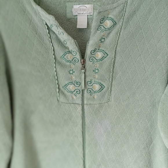 Stylish green zip-up top with intricate embroidery. Perfect for casual wear.