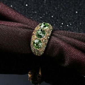 Green Emerald CZ yellow Rhodium Plated Ring New