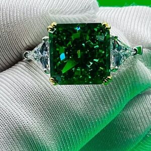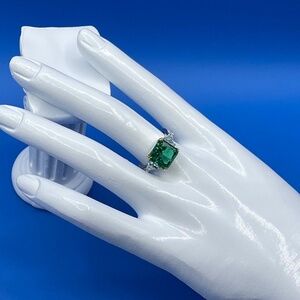 Green Emerald Lab Created Hybrid Diamond Ring - Engagement Ring - Cocktail Ring