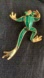 Super cute green and golden frog brooch with articulated legs, perfect for amphibian enthusiasts. Adds a touch of nature-inspired charm to any outfit.