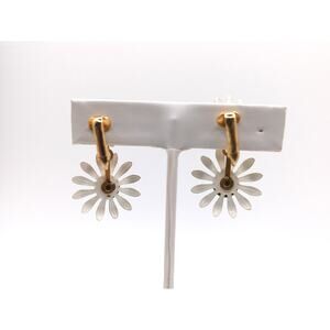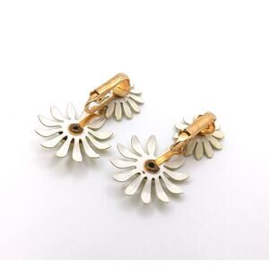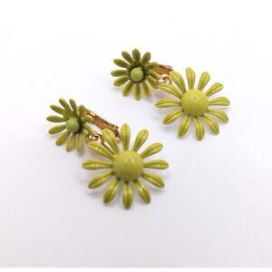 Two cute lime green enamel flowers. Dangle Earrings in gold toned metal. Clip Earrings. Unsigned. EUC.