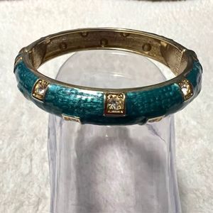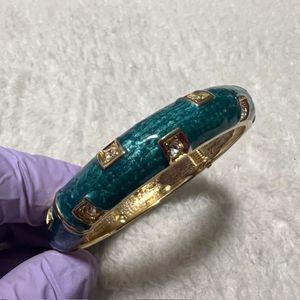 Green Enamel Rhinestone Goldtone Hinged Bracelet