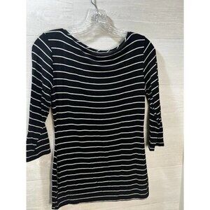 Green Envelope 3/4 Sleeves Stripes Tunic Blouse Small