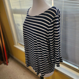 Green Envelope $55 1X Navy White Stripe Ruffle Cuff Stretch Knit Tunic Top