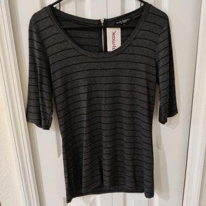 Green Envelope Black Gray Striped 3/4 Sleeve Blouse Medium NWT
