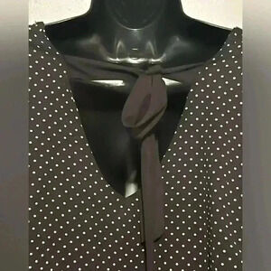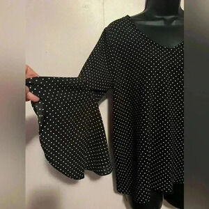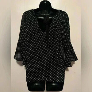 Green Envelope Black White Polka Dot 3/4 Angel Sleeves Back Tie Blouse Womens M