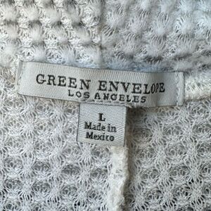Green Envelope Cowl Neck Tie 3/4 Length Long Sleeve White Gray Size L