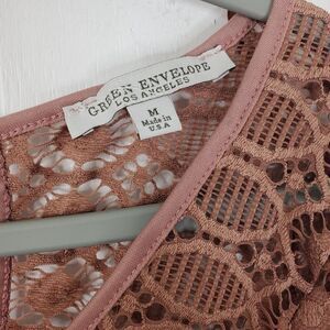 Green Envelope Crochet Boho Top Bell Sleeve Fairy Beachy Coastal Womens M Mauve