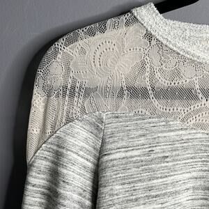 Cute long sleeve top from Green Envelope. Gray with lace along the neckline. Casual and would be great with a pair of jeans.