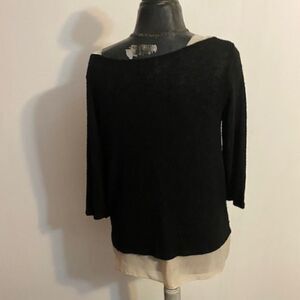 Green Envelope Los Angeles Black/Cream pull-over sweater, size 0X (48% Polyester, 48% Rayon, 4% Spandex)