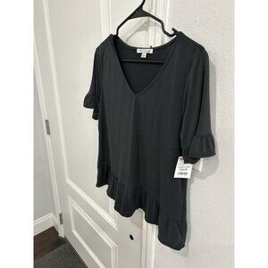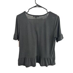 Green Envelope Los Angeles Ruffled Hem Short Sleeve V-Neck Top Black Small NWT