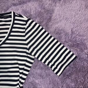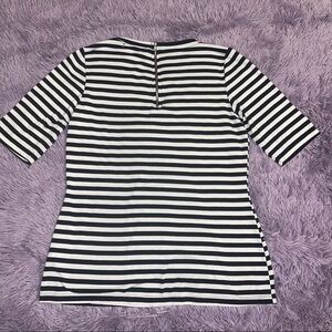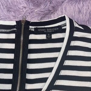 Green Envelope Los Angeles Striped Top. Black and white. Pullover style with half zipper closure . 3/4 sleeves. Regular fit. Stretchy. Pet and smoke free home.