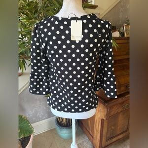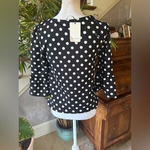 Green envelope, Los Angeles ladies, long sleeve black with white polkadot crewneck shirt new with tag size small cute flared sleeves with pair beautifully with a pair of white pants in the summer really cute shirt