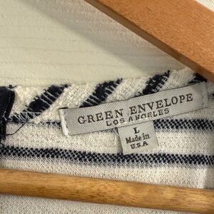 Chic navy and white striped top with zipper back. Ideal for everyday wear. Size L. Made in the USA.