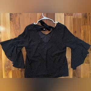 Green Envelope Polka Dot Tie Top Waterfall Sleeve Retro Festival Women's Size L