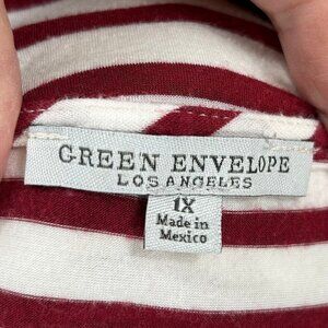 Green Envelope Red White Stripe Short Sleeve V-Neck Top Size 1X