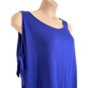 Refresh your wardrobe with this Royal Blue, Cold Shoulder, Short Sleeve Tee Shirt from Green Envelope. This size 1X top is brand new with tags.