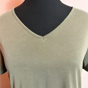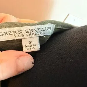 Green Envelope Ruffled Top has short sleeves. Made in the USA. Size S.