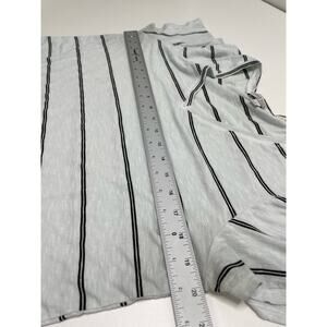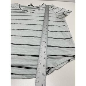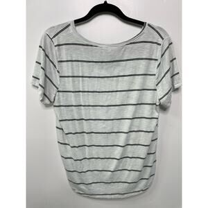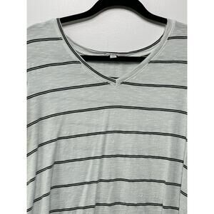 Green Envelope Short Sleeve Striped Print V-Neck T-Shirt Gray White Womens L