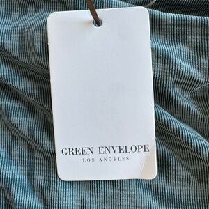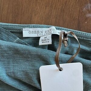 Short Sleeve, Size Medium, Green textured with a draped neckline