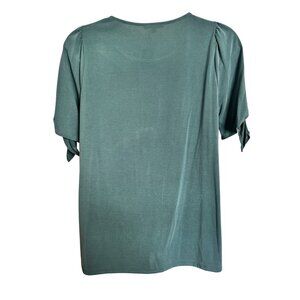 This Green Envelope soft stretchy top features a round neck and stylish tie short sleeves, perfect for a chic casual look. New with tags, it's comfortable and elegant, ideal for any occasion.