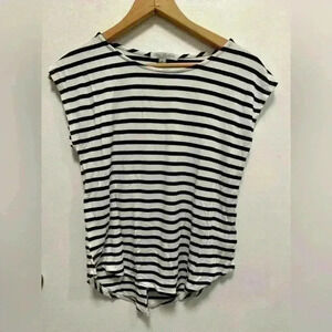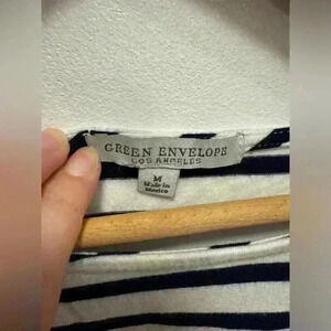 Green Envelope women’s striped black and white top with cap- sleeves size medium. Very comfy and stretchy shirt will be a “go to” in your closet. Great for any time of the year. Pre-owned and in excellent condition.