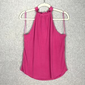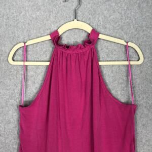 Green Envelope Tank Top Small Pink Halter Ruffle Flowy Soft Stretch Modal Resort