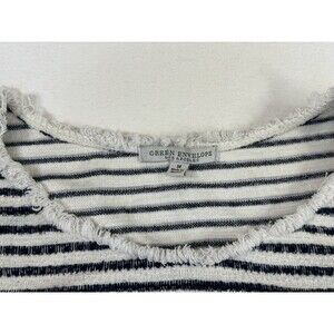 Green Envelope Women's Black And White Stripe Textured Fringe Top Sz Med Boho