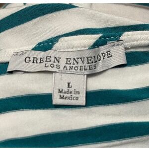 Green Envelope Women's Los Angeles Teal Striped T-Shirt Hi-Low Hem L-Nautical