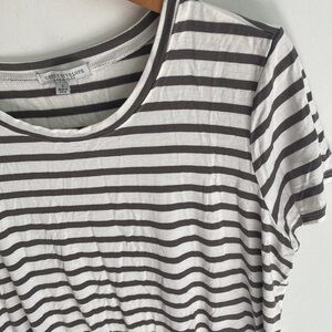 Green Envelope Women’s Short Sleeved, Striped Gray & White Top, Size L