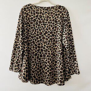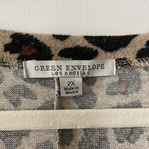 Green Envelope Womens Tan Brown Leopard Print Y2K Thin Knit Sweater Size 2X