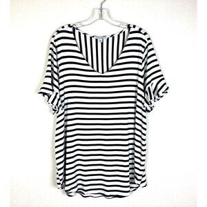 Green Envelope Women's Top Size 1X Black & White Striped Short Ruffled Sleeve