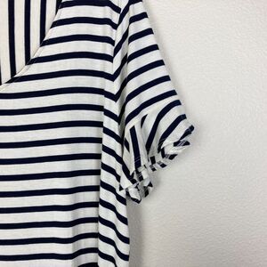 Green Envelope Top Women's Size 1X Black & White Striped Short Ruffled Sleeve