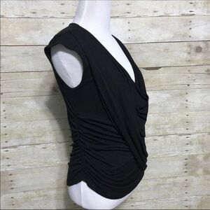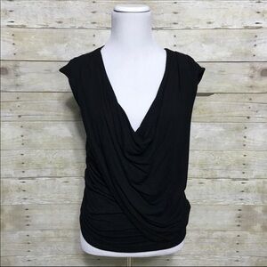 Green Envelope sparkly cap sleeve asymmetrical draped front shirred top size L. Gently used.