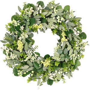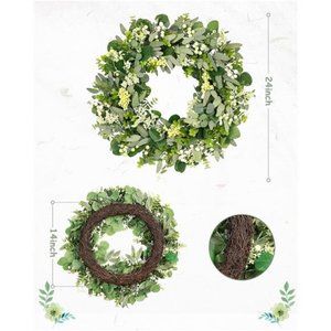 Green Eucalyptus Leaf Wreath, 24 Inch Artificial Spring Summer Wreaths