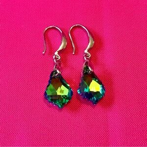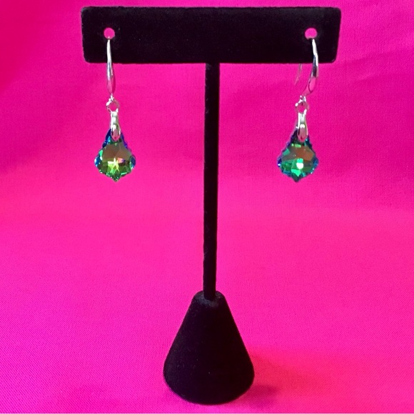 These Green Faceted Faux Gemstone Drop Earrings are a beautiful and elegant accessory perfect for various occasions such as Mother's Day, weddings, anniversaries, birthdays, and Valentine's Day. Made with green faux gemstones in a leaf shape, these 40mm drop earrings feature a hook closure for easy wear on the lobe. The green color adds a touch of beauty to any outfit, making them a great gift for loved ones or a stylish addition to your own jewelry collection. NWOT