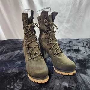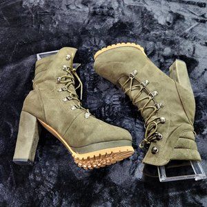 Green Faux Suede Lace-up 4" Block Heel Ankle Booties