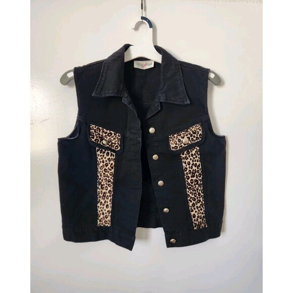 Green Field Denim Vest Womens Button Up Country Western Jean Black USA Size M?