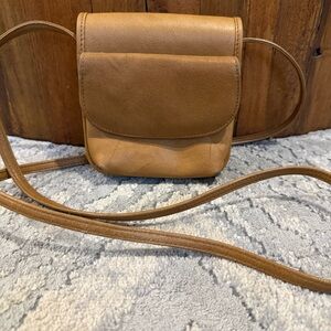 Green Fields Brown Crossbody Shoulder Handbag Purse Pocketbook Vintage Leather P