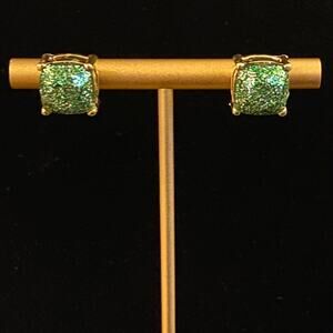 Sparkling green fine glitter stud earrings feature 4-claw settings, glitter sequins and classic square shape, shining like stars, charming and eye-catching, vibrant colors. Made of sequins, resin and stainless steel, which are durable and sturdy, and lightweight and to wear.