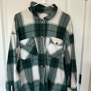 Stay stylish and warm with this plaid green and white jacket. Perfect for layering in cooler weather, and perfect for a Christmas party, or any holiday outing! Very thick material.