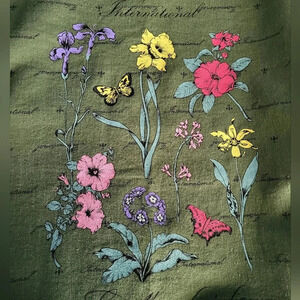 Green Floral Black Script Mock Neck Sweatshirt Vintage Cottagecore Nature