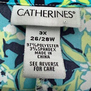Green Floral Boho Chic Button Front Stretch Tunic Blouse Top Women 3X