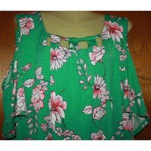 Women's green floral cold shoulder pullover top. Plus size 2X. Square cutouts at neckline. Pink white flowers. Polyester blend. Tag says hand wash, but I wash mine on delicates. New with tags.