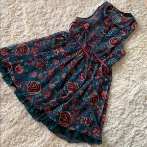 Girls Green Floral Dress Size 12