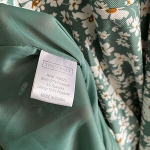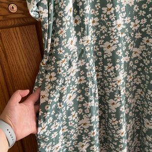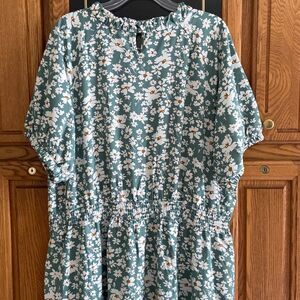 Green Floral Summer Raglan Sleeve Ruffle Neck Dress. New with tags. Size: 22-24. Flowy lightweight summer dress. Half lined. Pockets. Back stretchy wide waistband. Measurements approximately while laying flat: Length: 53”. Armpit to armpit: 26”. Waist: 22” + stretches more. Sleeve: 15” from the neckline.